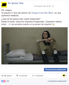 Hace un mes, desde la página oficial de Facebook de It’s Spoiler Time hicimos una simple pregunta a nuestros seguidores sobre Orange Is The New Black: ¿Qué tal les parece esta cuarta temporada? Y de simple pasó a compleja: muchísimos fans de la serie comentaron y expresaron sus sentimientos.