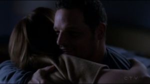Luego que Meredith haya recorrido prácticamente medio estado para encontrar a Alex, quien todos asumimos que estaba en la cárcel, ya que lo último que sabíamos de él era que iba a aceptar el acuerdo del fiscal, ella lo encuentra. Estaba en su habitación, siempre estuvo en casa de Meredith durmiendo.