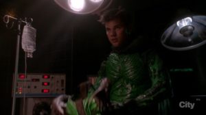 Chanel Nº9, que le teme a las agujas, es maniatada por Chanel para que le done sangre y así ganar el concurso. Cuando deja la sala, The Green Meanie ingresa para matarla pero lo descubre la enfermera Hoffell. En vez de ayudar a la pobre chica que esta por morir, le pide que le revele quién es para ayudarlo a continuar con sus planes. El Green Meanie se quita la máscara y es nada menos que el Dr Cassidy Cascade. Él manifiesta que no es demasiado experto en esta materia y que por eso no le ha dado muerte a todos las potenciales víctimas que se le presentaron.