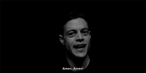 El discurso de disconfort sobre dioses, religiones, hipocresía y sinceridad ha sido de las mejores cosas que nos ha regalado no sólo Mr. Robot sino la TV en general. Rami Malek es un grandioso actor y esta escena es sólo una de las tantas pruebas de su grandiosidad.