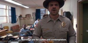 Chief Hopper (David Harbour): Mornings are for coffee and contemplation.
