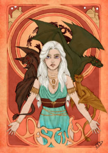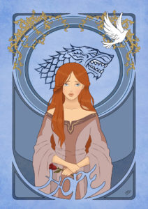 Kasami-Sensei, la gran artista digital que te mostramos hace unos días en esta nota, cuya cuenta en Deviant Art es esta, acepta que es fan de las series: en uno de sus tantos dibujos escribe que el regreso de la nueva temporada de Game of Thrones me inspira.