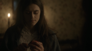 El sexto y último episodio de Alias Grace vuelve a traer la voz de Emily Dickinson, desde su poema CVI, donde dice: «Sentí una división en mi mente, como si mi cerebro se quebrase. Traté de unir las piezas, puntada tras puntada, pero no pude emparejarlas…«. El poema habla de una división en la mente. Y es eso precisamente lo que sucede en este capítulo, literalmente. Grace se somete a la hipnosis de su amigo Jerome (disfrazado) y hace aparecer la voz de Mary Whitney, como si estuviese poseída por ella, contando la cruel verdad de su vida, cómo ha utilizado a los hombres a su antojo y lo poco que respeta a las mujeres que se esconden detrás de ellos.