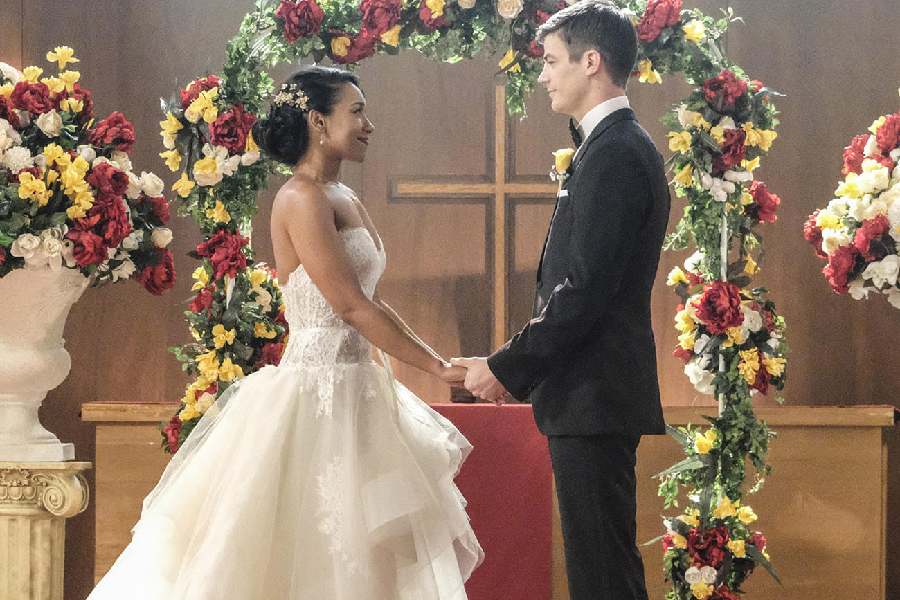 5 Barry y Iris (The Flash) - Hay que reconocer que cuando comenzó la boda antes de la invasión nazi todos lloramos de emoción. ¡Inolvidable Kara cantando la canción de Barry!