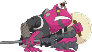 De alto poder combativo. Es de los más grandes sapos que se han visto en la serie, es muy bueno con las artes marciales y el manejo de katanas. Silencioso y mortífero.