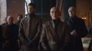 En la búsqueda de aliados, se puede apreciar la visita de los Tarly al Desembarco del Rey y su encuentro con Cersei. La reina busca con quien combatir a todos los enemigos a lo largo y ancho del mapa. En esta misma imagen aparece Tom Hooper, el nuevo actor que interpreta a Dickon Tarly.