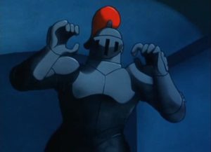 Quizá uno de los misterios más populares del show, ya que este fue el primer episodio de lo que sería la aventura de esta exitosa pandilla. En la serie solo se comenta que la armadura cobra vida a medianoche durante la luna llena y que esta proviene de Inglaterra.