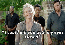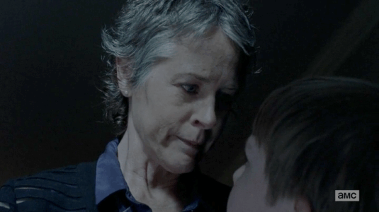 Carol es la más madre de todas las madres, y como toda madre, defiende a sus crías, que vendría a ser su grupo. Esta escena es todo lo que está bien.
