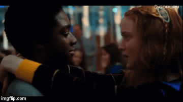 Por otro lado, el triángulo amoroso de esta temporada se acaba y Max y Lucas se dan su primer beso. Mientras Will baila con una de las estudiantes, Mike se siente excluido y mira con desanimo como se divierten sus amigos. Desde lejos, una Eleven totalmente cambiada abre las puertas del salón y se dirige en búsqueda de su amigo. Mike y ella salen a la pista y con la música de The Police de fondo finalmente se besan.