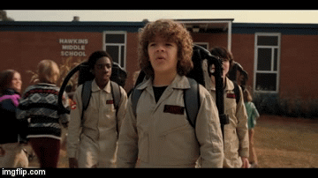 La mejor noche del año para los chicos de Hawkins no podía ser otra que la del 31 de octubre. Disfrazados de Los Cazafantasmas y tarareando la clásica canción de la película de los ‘80, Mike, Dustin, Lucas y Will llegan al colegio. Pero el entusiasmo dura muy poco: mientras Lucas y Mike se pelean por haber ido caracterizados con el mismo personaje, Dustin descubre que son los únicos que han ido disfrazados.