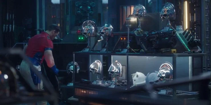 Hay varios cascos en la casa de Auggie Smith que no se pueden identificar. No está claro exactamente cuántos tomó Peacemakeren el episodio 4, pero es posible que se revelen más poderes más adelante.