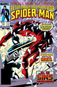 Tras la muerte de Jean DeWolff, Spider-Man quedó en un estado bastante emocional, y hacia el final de Peter Parker, The Spectacular Spider-Man#110, las cosas se pusieron tan oscuras que casi mata a un criminal por pura ira. Afortunadamente, Daredevil lo frenó a tiempo, haciendo que Peter se desquitara con él. A lo largo de la lucha, los dos discuten sus ideologías hacia el heroísmo y la justicia, dando al tema mucha más profundidad. Al final, Spider-Man se da cuenta que su amigo tiene razón y se calma, a pesar de que los dos están en desacuerdo con la mayoría de las cosas.