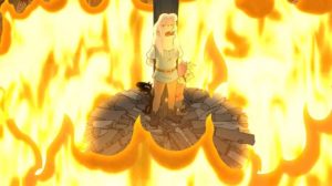 Todo Dreamland se puso en contra de Bean acusándola de intentar matar a su padre. Así, fue condenada junto a Elfo y Lucí a la hoguera pero, justo antes de su muerte, la madre de Bean llega a rescatarlos
