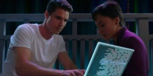 Mientras intentan que Nathan se quede despierto durante la actualización que podría restaurar sus recuerdos, se besan en el balcón de su apartamento en Lakeview. Es una escena mágica porque, en el exterior, la actualización se presenta como una aurora boreal.