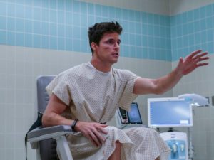 ¡Obviamente en Lakeview también tenían que hablar los animales! Esta escena es muy graciosa pues Nathan esperaba relajarse mientras acariciaba a un perro de terapia, pero resulto ser que estaba controlado por un terapeuta real. “Solo es raro si tú lo haces raro”, le dijo el labrador y morimos de risa.