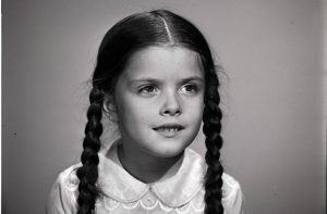 Los Addams vieron la luz como tira cómica en 1938 en The New Yorker. Merlina, al igual que los miembros de su familia, no tenía nombre… ni voz: los adultos eran los únicos que hablaban. No fue hasta el programa de televisión de 1964, The Addams Family, que el creador de la familia, Charles Addams, le dio nombre. La primera versión de Merlina Addams (interpretada por Lisa Loring) no era espeluznante ni chiflada en absoluto: si bien mantiene el mismo look general con un vestido negro y dos coletas trenzadas, era una niña seria, y punto. Ok, su amor por las arañas y las muñecas sin cabeza era raro, pero en general era bastante optimista y no tan «poco convencional» como el resto de su familia.