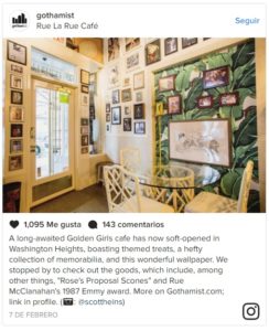 Inspirado en el legado del clásico show televisivo, el Rue La Rue Café acaba de abrir sus puertas en el barrio Washington Heights de Manhattan, especializado en cerveza y cheesecake, en homenaje a los personaje de Golden Girls, ficción de la NBC que salió al aire entre 1985 y 1992. El restaurante, propiedad del hijo de Rue McClanahan (Blanche Devereaux en la serie), Mark Bish y Michael J. LaRue, mejor amigo de la estrella del show, cuenta con cientos de piezas de memorabilia en su interior a modo decorativo.