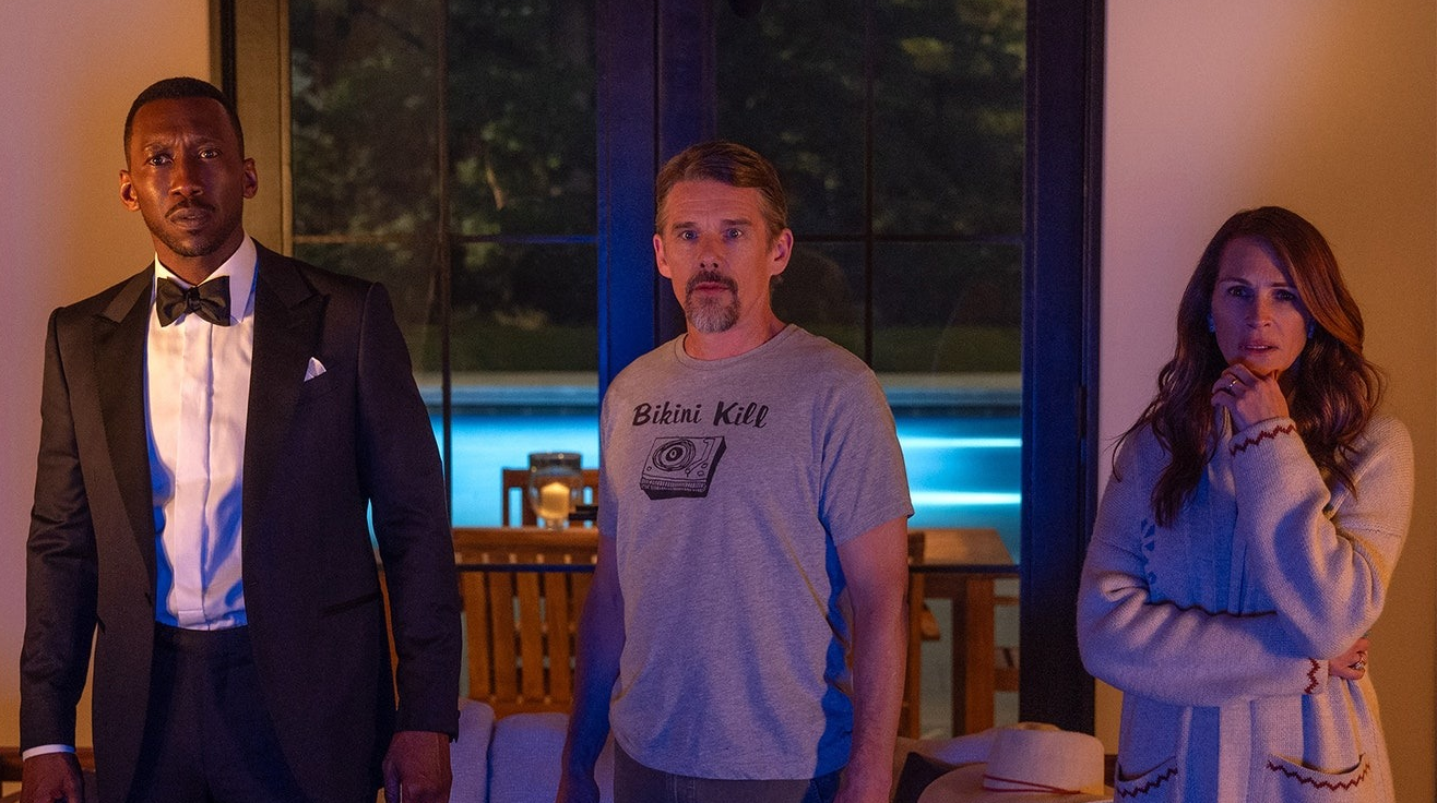En Dejar el mundo atrás, “las vacaciones de una familia (Ethan Hawke y Julia Roberts) se convierten en una pesadilla cuando dos extraños (Mahershala Ali y Myha’la) llegan en medio de la noche y alertan sobre un ciberataque aterrador. Ante la inminente crisis, todos luchan por encontrar un lugar en un mundo que se derrumba”.