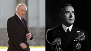 Derecha: Charles Dance en The Crown. Izquierda: Louis Mountbatten.