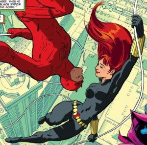 La espía rusa rescató a Daredevil casi muerto de la bahía de Nueva York tras un accidente de helicóptero en el cómic #81 de 1971. Luego, los amantes se mudaron a San Francisco y recién en 1975, el personaje de Natasha decide dar por terminado el romance.