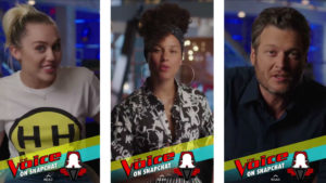 The Voice de NBC y E! News de E! Entertainment serán las primeras marcas de NBC Universal en desarrollar shows que debutarán por Snapchat Discovery como parte de la nueva alianza. The Voice en Snapchat se lanzará el 22 de agosto como parte de una serie de formato corto de cinco capítulos. Contará con los entrenadores Miley Cyrus, Alicia Keys, Adam Levine y Blake Shelton, así como videos entregados por usuarios, que serán revisados por los entrenadores con la posibilidad de salir en el estreno de la nueva temporada de The Voice, el 19 de septiembre.