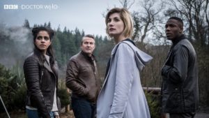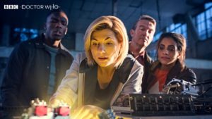 Jodie Whittaker y sus tres nuevos companions: Mandip Gill, Tosin Cole y Bradley Walsh arribaron al famoso Hall H para presentarles a los asistentes sus primeras impresiones de ser parte de la undécima temporada de la nueva generación de la icónica serie británica. Durante el panel, la protagonista, y primera mujer en el rol del Doctor, reveló su felicidad de ser parte de este proyecto.