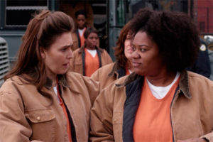 Aquellos fans de OITNB que no le han dado una oportunidad a la comedia de Tina Fey tienen una excusa ideal para hacerlo en la 3ra temporada, ya que los universos de ambas series se han cruzado sin previo aviso. Acaba de estrenarse en Netflix lo nuevo de Unbreakable Kimmy Schmidt, y para sorpresa de todos, en el quinto episodio puede verse a uno de sus personajes secundarios interactuando con una reclusa en Litchfield.