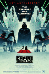 «¡Feliz cumpleaños 40, The Empire Strikes Back! Este es mi nuevo póster oficial de la película. Fue un GRAN placer y honor hacer este arte de Star Wars para Lucasfilm y Disney. Debería poder mostrarles más la semana que entra».