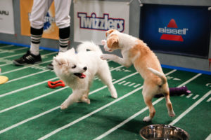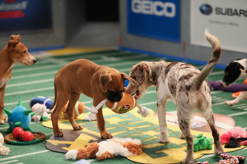 Dos equipos adorables se preparan para el gran juego. El torneo contará con cachorros lindos que compiten cabeza a cabeza en una batalla de besos y ternura.