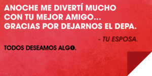 Esta mañana amanecimos con diversas frases distribuidas por toda la ciudad que nos tienen sorprendidos y nos han dejado con ganas de pasar un buen rato. 😉 Tal vez apliquemos el Series & Chill, o probablemente invitemos a un/a amigo/a, o tal vez a la pareja de algún conocido para pasar un buen rato para pasar un buen fin de semana…