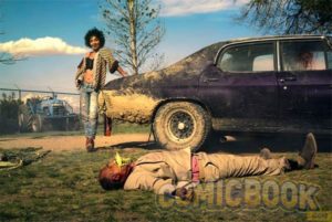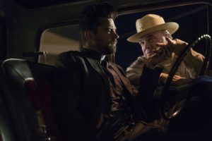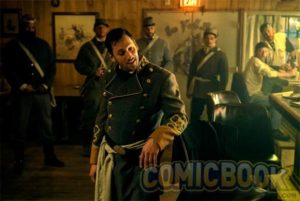 Jesse Custer (Dominic Cooper) y Sheriff Root (W. Earl Brown).