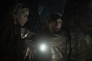 En la primera imagen podemos ver a Sabrina (Kiernan Shipka) junto a las extrañas hermanas Agatha (Adeline Rudolph), Prudence (Tati Gabrielle) y Dorcas (Abigail Cowen) en lo que parece ser un aterrador bosque.