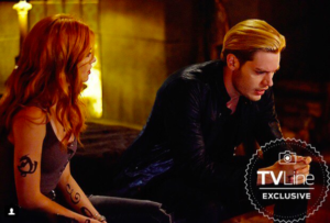 Además, Jace (Dominic Sherwood) y Clary (Katherine McNamara) parecen estar teniendo una plática muy seria en otra de las fotos, cortesía de TV Line, medio que le está ganando la pulseada a Entertainment Weekly en cuanto a adelantos «first look» de lo que llegará durante el nuevo año.
