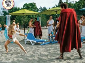 La premiere de la nueva temporada de DC’s Legends of Tomorrow se llama: Aruba-Con, y ahora lo entendemos todo. En la imagen que verán a continuación, Sara Lance (Caity Lotz) se enfrenta a un gladiador (¿griego?, ¿romano?) en lo que parece ser una convención de cómics al estilo San Diego, sólo que realizada en las playas de Aruba, como el título lo indica.