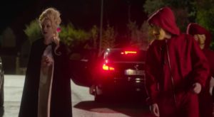 El momento ocurre cuando la madre de Rebeca le organiza a su hija una fiesta de Halloween. Sus compañeros de Las Encinas asisten disfrazados y cuando Carla decide dejar la fiesta, se topa con un grupo que lleva las características máscaras de La Casa de Papel.