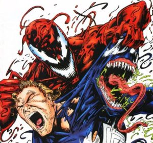 En el cómic Spectacular Spider-Man #178 de 1991 , el Instituto Ravencroft encarceló a Cletus después de unirse al simbionte Carnage y luego escapó con la ayuda de Shriek para atacar al universo de Marvel en Maximum Carnage. La instalación fue destruida más tarde durante los eventos del crossover Absolute Carnage. Este parece que será el camino que tomará la película.