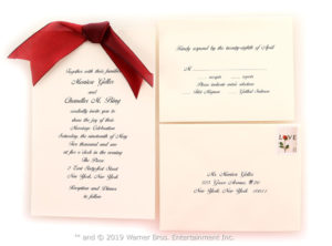 El líder de Prop Store asegura que habrá objetos increíbles de las 10 temporadas de Friends, como el muñeco Hugsy de Joey, el traje de Armadillo de Ross, el legendario sillón de Central Perk, copias del marco de puerta del departamento de Monica y esta inolvidable invitación (que queremos pensar que NO ESTABA debajo de Ross y Rachel cuando… bueno, ustedes saben):