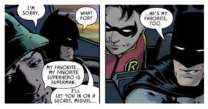 En la historieta Detective Comics #1017 de Tom Taylor y Travis Lanham, Bats busca y encuentra a un huérfano de 15 años, quien al ser rescatado, le confiesa a Batman que su superhéroe favorito es Superman (lamentando que no lo sea él), a lo que Bruce Wayne enmascarado le responde: