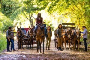 Prueba de todo es la primera imagen de la novena temporada que nos muestra a Michonne (Danai Gurira) encabezando a una parte del grupo hacía otro lugar. La vemos a ella montada en un caballo y al frente de todos, mientras los demás parecen estar teniendo problemas con sus carretas. ¿Se habrá acabado la gasolina después de tantos años? Su nuevo medio de transporte nos hace creer que sí.