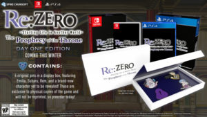 Spike Chunsoft anunció que su videojuego Re:Zero – Starting Life in Another World: The Prophecy of the Throne llegará a América en invierno de 2020.