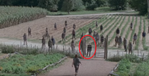 El grupo que estuvo en el cementerio frente a Los Susurradores, el mismo que vio morir a Jesus, vuelven siendo la misma cantidad de personas. Ok, el cuerpo de Jesus está sobre uno de los caballos, pero sobre otro equino llega una prisionera: Lydia.