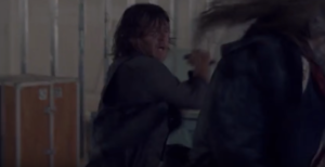 Y hablando de poder y Daryl, vemos también un enfrentamiento GENIAL: Daryl contra Beta (Ryan Hurst), el Susurrador más fortachón de todos. Ambos son hábiles con los cuchillos y muy salvajes. Esperamos una lucha épica.