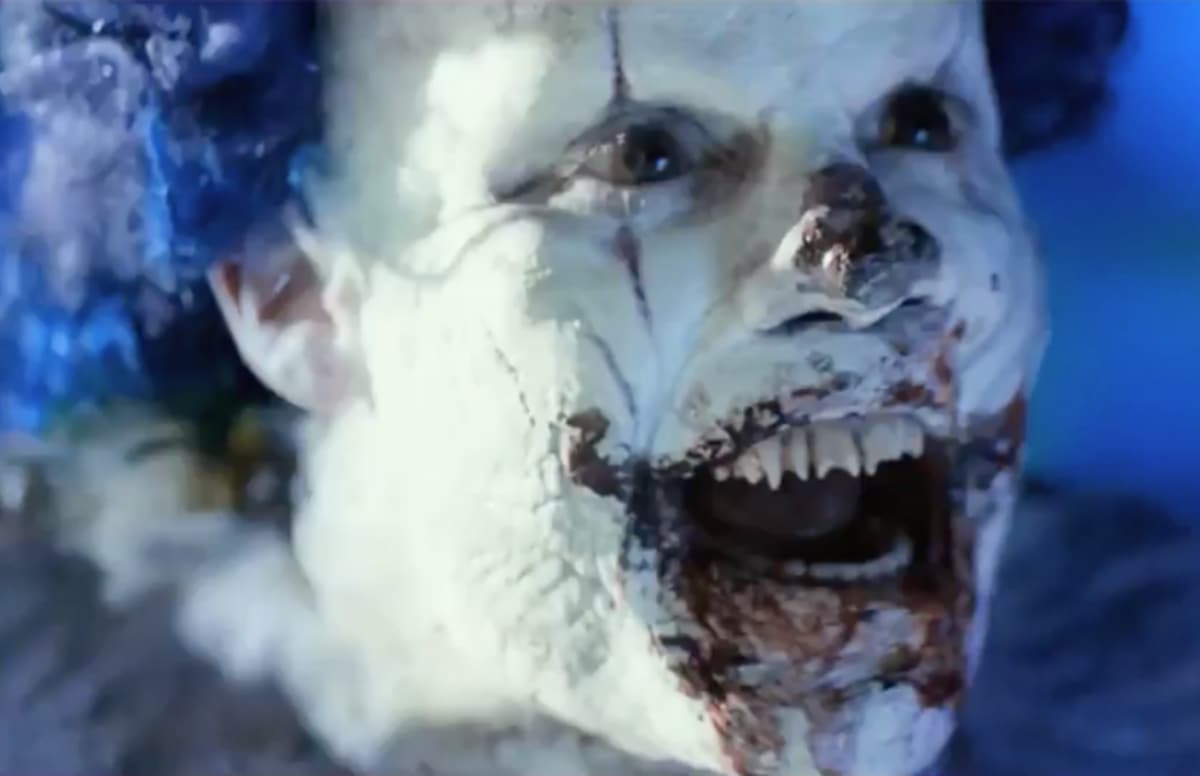 Der Klown es capaz de romper su cara de porcelana y revelar una boca carnosa y llena de dientes con la que puede consumir humanos enteros. Verlo tragar a Jordan es la parte más inquietante de la película.