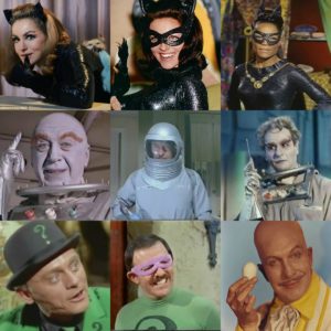 Otros villanos eran Cabeza de huevo (el gran Vincent Price), Mr. Freeze (Otto Preminger, George Sanders y Eli Wallach, después), El Acertijo (Fran Gorshin y John Astin, Homero de Los locos Addams), Catwoman (Julie Newmar y Earthe Kitt) y el mismo Dozier como el narrador.