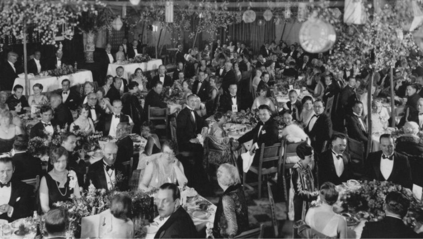 A diferencia de lo que ocurre hoy, la primera edición de los Premios Oscar fue una cena elegante. Se llevó a cabo en la Blossom Room del Hotel Roosevelt, en Los Ángeles, y reunió a poco más de 250 invitados. El boleto costaba cinco dólares, una suma respetable para la época, pero muy lejos de la exclusividad que hoy rodea a la ceremonia.