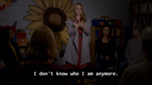 En ambas temporadas es muy visible la forma en que perdió su identidad y se dedicó a cuidar a su hijo, cómo descuidó su relación con su marido e incluso dejó de preocuparse por sí misma, centrándose en el autismo, el autismo y el autismo.