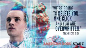 Llegó el momento de contar, o más bien describir, al primer Dios de la era moderna, uno que, a su vez, es del bando contrario del Mr. Wednesday. Se trata de un joven malhumorado y bastante soberbio: con ustedes Technical Boy.