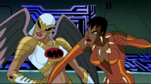 El antecedente marca la participación de Vixen en la serie de Cartoon Network Justice League Unlimited luego de la invasión Thanagarian. Como se ve en la imagen, ella tuvo sus diferencias con Hawkgirl por el corazón de John Stewart, uno de los Green Lantern. Participó en total de 13 capítulos.