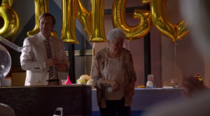 Jimmy llega a las instalaciones de Sandpiper donde le hace una visita a Irene, quien casualmente es la representante general del juicio contra Sandpiper. Ella le da detalles generales del juicio y él le aconseja tomar el acuerdo. Irene no puede seguir la conversación porque sus amigas llegan para ir a una clase de yoga y se sorprenden de ver a Jimmy ahí. Al salir de la casa de retiro, Jimmy calcula de cuánto sería su ganancia si el juicio termina con el trato acordado.