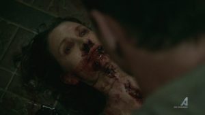 Al terminar con el detective decide ir con su madre a almorzar, y la ve tendida en la nevera y trata de ayudarla pero es demasiado tarde y Deborah fallece.